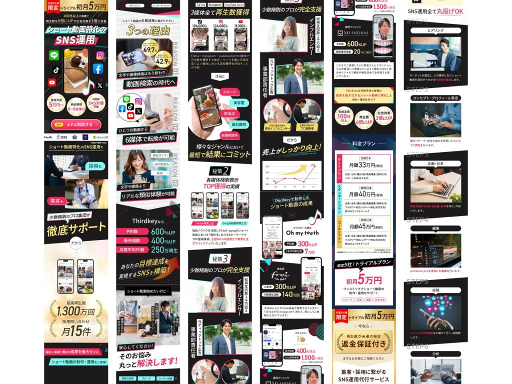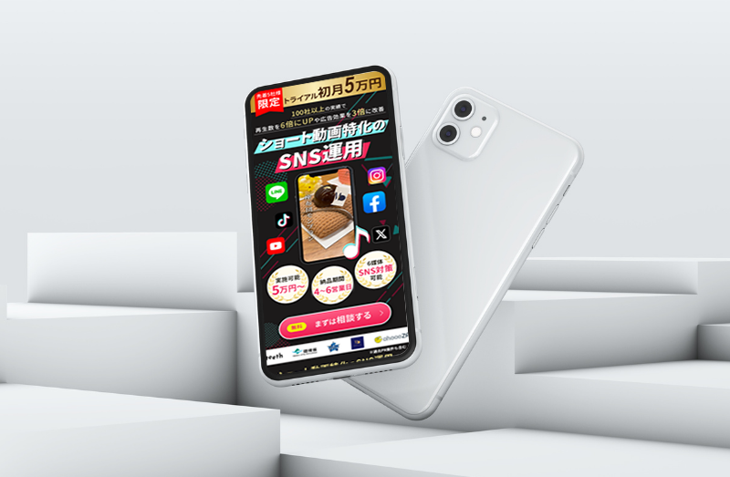 TikTok運用代行サービスのランディングページを作成。ショート動画プラットフォームでの集客課題を抱える企業に対し、「短期間での成果実現」「低コスト導入」「プロによる運用体制」といったサービスの最強訴求軸を視覚的に明確化しました。初期費用の手軽さと月額料金体系を目立たせつつ、実際の運用実績や事例数値を階層的に配置することで、TikTok初心者企業の購買心理に直結する情報構成を実現。カラフルで動的なビジュアル表現と、シンプルで分かりやすいテキスト構成のバランスを最適化。スクロール完結でのコンバージョン向上を実現するデザイン群を構築しています。